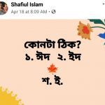 ♣ Let’s Learn …! Which one is correct …? During the Corona crisis, we have been learning the modern correct spelling of a word every day since April 2020. Heartfelt greetings to everyone who has joined us on this journey. To see how much you’ve learned—over 100 words—you’ll find the link below. ‘… This life is a joyful journey …!’ 🕋 Let’s Learn …! Which one is correct …? https://www.facebook.com/notes/shafiul-islam/%E0%A6%8F%E0%A6%B8%E0%A7%8B-%E0%A6%B6%E0%A6%BF%E0%A6%96%E0%A6%BF-%E0%A6%95%E0%A7%8B%E0%A6%A8%E0%A6%9F%E0%A6%BE-%E0%A6%A0%E0%A6%BF%E0%A6%95-/3076481382410102/