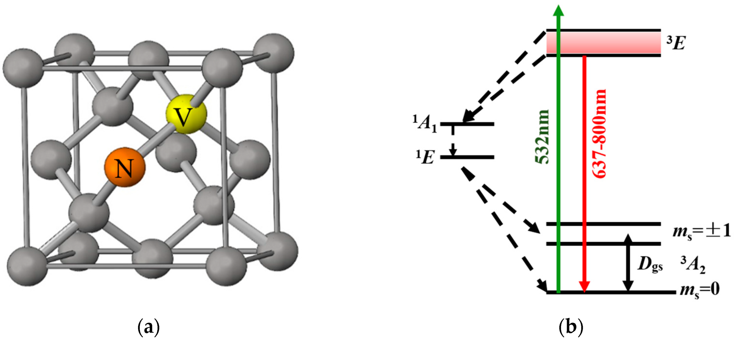 NV (Nitrogen-Vacancy) Center সেন্টার হলো ডায়মন্ডের কাঠামোর মধ্যে একটি কৃত্রিম ত্রুটি—যেখানে একটি কার্বন পরমাণুর জায়গায় থাকে নাইট্রোজেন, এবং তার পাশের একটি স্থান থাকে ফাঁকা (vacancy)।