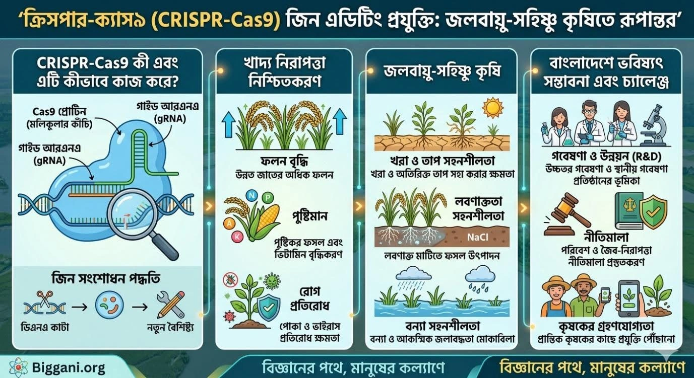 As the population continues to grow, climate change is constantly posing new challenges to agriculture—drought, salinity, floods, tidal surges, new diseases, and pests are making food production increasingly uncertain. At this crossroads, science has introduced a groundbreaking technology—CRISPR-Cas9, known as the “molecular scissors,” because it can enter the blueprint of life, DNA, and make precise changes at targeted spots.
