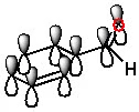 কারণ, অ্যারোমেটিক রিংয়ে পাই ইলেকট্রন আছে। ৬টি পাই ইলেকট্রন কনজুগেটেড অবস্থায় থাকে। কার্বনিল মূলকের পাই বন্ধনও দুটি পাই ইলেকট্রনের কারণেই হয়। বেনজিন রিংয়ের পাই ইলেকট্রন এবং কার্বনিল মূলকের পাই ইলেকট্রন কনজুগেটেড অবস্থায় থাকে (নিচের ছবি দেখো)। স্থিতিশীল কনজুগেশন তৈরি করে। ফলে অ্যারোমেটিক অ্যালডিহাইডের কার্বনিল মূলকের কার্বনে ইলেকট্রনের ঘনত্ব, অ্যালিফেটিক যৌগের কার্বনের তুলনায় বেশি থাকে। এ কথাটা সহজে বোঝানোর জন্য এভাবে বলেছি। বস্তুত মলিকিউলার অরবিটাল থিওরির আলোকে ভিন্নভাবে ব্যাখ্যা করা যায়। কিন্তু মলিকিউলার অরবিটাল থিউরি উচ্চতর পর্যায়ের জন্য।