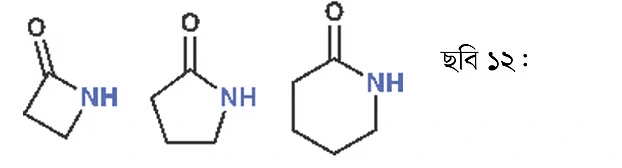 Dimethylformamide (DMF) is used as a solvent. As this solvent has a high boiling point (about 150°C), it is used in reactions at high temperature. Amide group-containing compounds are also found in drugs. For instance, a key part of the penicillin molecule is a cyclic amide. This type of cyclic amide is called a lactam. If it’s a four-membered ring, it’s called a beta-lactam. In a five-membered ring, it’s a gamma-lactam, and in a six-membered ring, a delta-lactam. Penicillin contains a beta-lactam ring.