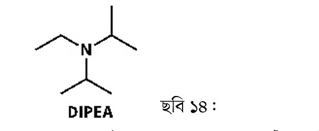 If the hydrogens in ammonia are replaced by other groups, different amines are formed. For example, adding an isopropyl group makes (2) isopropylamine. Adding two ethyl groups gives (3), diethylamine. Diethylamine can be compared to ether: ether contains oxygen, while diethylamine contains nitrogen. Since ammonia has three hydrogens, all three can be replaced by carbon chains. For instance, adding three ethyl groups produces triethylamine (4). Triethylamine (TEA) is widely used as an organic base. Another widely used base is diisopropylethylamine (DIPEA), also known as Hunig’s base. Its uses will be discussed in the future, so it’s recommended to read and practice repeatedly to remember these.