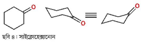 During the discussion on cyclohexene, we also looked at its chair conformation. Likewise, drawing the cyclohexanone molecule in different ways can help in discussion and understanding. All the drawings in the image below are correct (Image 4). However, drawing it in chair conformation is recommended for practice.