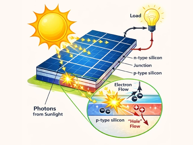How energy is generated from a solar panel: When sunlight hits the panel,
