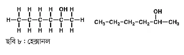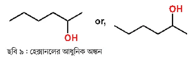 ২-হেক্সানল (2-Hexanol) যৌগটি আঁকার জন্য ওপরের কোনো পদ্ধতি আমরা ব্যবহার করব না। বরং আধুনিক অঙ্কন ব্যবহার করব (ছবি ৯)।