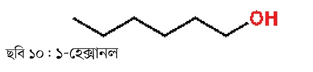 নিচের যৌগটিতে (ছবি ৮) ছয়টি কার্বন পরমাণু আছে। তাই এর নাম হেক্সানল। হেক্সেইন থেকে হেক্সানল।