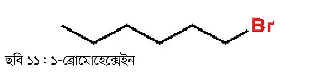 একইভাবে অন্যান্য কার্যকরী মূলকগুলো বসিয়ে ভিন্ন ভিন্ন যৌগ আঁকা যায়। যেমন অ্যালকোহলের জায়গায় আমরা হ্যালোজেন (F, Cl, Br, I) পরমাণু ব্যবহার করতে পারি। যেমন ১-হেক্সানলের মতো করে আঁকা যায় ১-ব্রোমোহেক্সেইন। অ্যালকোহলের স্থলে ব্রোমিন পরমাণু বসিয়ে দিলাম। একটা ভিন্ন যৌগ হয়ে গেল।