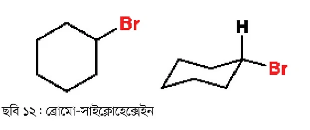 এসব যৌগ চক্রীয়ও হতে পারে। যেমন ব্রোমো-সাইক্লোহেক্সেইন। আগের পর্বে সাইক্লোহেক্সেইনের একটা স্থিতিশীল কনফরমেশন নিয়ে আলোচনা করেছিলাম। চেয়ার কনফরমেশন।