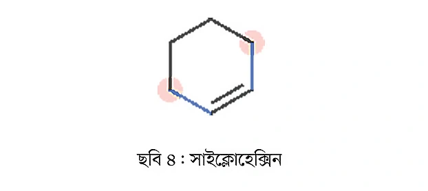 ওপরের উদাহরণগুলো ছিল অচক্রীয় (অ্যাসাইক্লিক) বা সরলরৈখিক যৌগের। চক্রীয় যৌগে বা সাইক্লিক কম্পাউন্ডেও দ্বিবন্ধন থাকতে পারে। যেমন সাইক্লোহেক্সিন (ছবি ৪)।