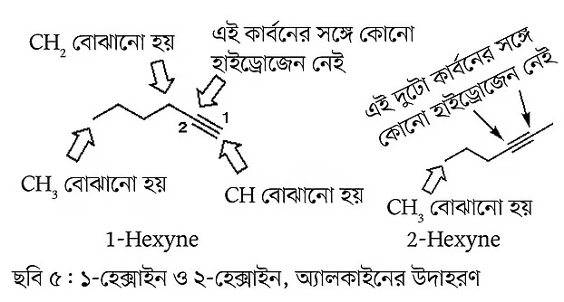 কার্বন-কার্বন ত্রিবন্ধনযুক্ত যৌগও প্রকৃতিতে আছে। এসব যৌগকে সাধারণভাবে বলা হয় অ্যালকাইন (ছবি ৫)। এ ধরনের যৌগে সিস ও ট্রান্স–আইসোমার থাকে না। অ্যালকাইন যৌগে এক বা একাধিক কার্বন থাকে, যার সঙ্গে কোনো হাইড্রোজেন পরমাণু যুক্ত থাকে না।