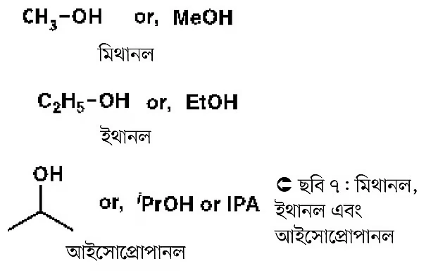 জৈব যৌগে হাইড্রক্সি (OH) মূলক থাকলে সেগুলোকে সাধারণভাবে অ্যালকোহল বলা হয়। এদের নামের শেষে অল (ol) যুক্ত করা হয়। যেমন ম্যাথানল বা মিথানল, ইথানল, আইসোপ্রোপানল এবং টারসিয়ারি-বিউটানল বা টার-বিউটানল ইত্যাদি। এই অ্যালকোহলগুলোর আণবিক ভর কম। এদের প্রচুর ব্যবহার আছে। যেমন দ্রাবক হিসেবে এসব যৌগের ব্যবহার সারা পৃথিবীব্যাপী। ইথানলকে যানবাহনের জ্বালানি হিসেবেও ব্যবহার করা হয়। পানীয় হিসেবে ইথানল ব্যবহৃত হয়। আইসোপ্রোপানল বা আইপিএ দ্রাবক হিসেবে খুব জনপ্রিয়। পৃথিবীতে বর্তমানে গড়ে ২০-২৫ লাখ মেট্রিক টন আইপিএ উৎপাদন করা হয়। হ্যান্ড স্যানিটাইজারে আইপিএ ব্যবহার করা হয়।